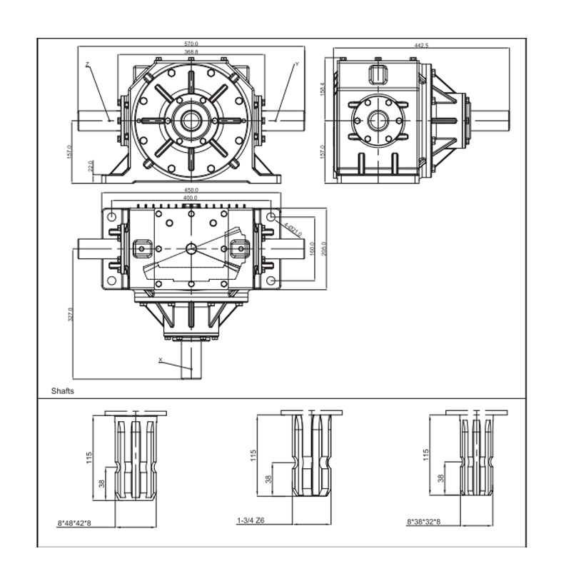 Şanzıman, makinenin veya traktörün ön dikey kutusundan güç girişi dönme hızını arttırır ve gücü ileten kesici şaftına iletim mili ve kayıştan iletir. Çift taraflı çıkış yoluyla, makinenin çalışma genişliği 3,5 metre ila 6,5 metreye ulaşabilir. Aynı zamanda, mahsuller üzerinde daha iyi bir ezici etki elde etmek için ikincil kırma fonksiyonunu da gerçekleştirebilir. Makine mahsul samanını ezer ve daha sonra paketleri geri dönüştürür ve yeniden kullanır veya doğrudan besleme standardına geri döndürür veya arazinin doğurganlığını artırmak için doğrudan alana döndürür. Bu tip şanzıman, küçük kare balyalar, tozu kaldıran küçük kare balyalar, yuvarlak balyalar, saman geri dönüş makineleri, vb. Gibi çeşitli ekipmanların kırma cihazlarında kullanılacaktır.